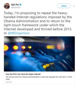 The proposal by FCC Chairman Ajit Pai is a sweeping repeal of the rules put in place under former President Barack Obama.