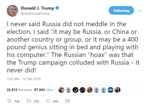 Unhinged. Trump questioned the intensifying special counsel investigation of his 2016 campaign and his administration while attacking his own national security adviser, the FBI, Democrat Hillary Clinton, former president Barack Obama, Democrats in Congress, CNN and others in a remarkable nine-hour span of tweets that included profanity and misspellings. Posting on Twitter from his Mar-a-Lago estate, he railed against the latest findings of special counsel Robert S. Mueller III and his team, which on Friday filed 13 indictments against Russians and alleged that an interference effort in the 2016 campaign run from St. Petersburg, Russia, was intended to push voters toward Trump and away from rival Clinton.
